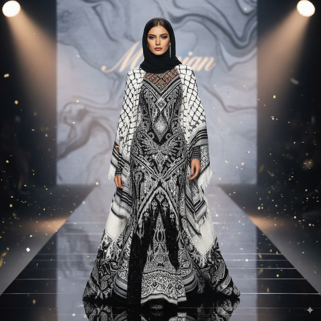 Perfect for elevated evening styling, cultural ceremonies, stage and media presence, or layering over minimalist silhouettes for symbolic effect.