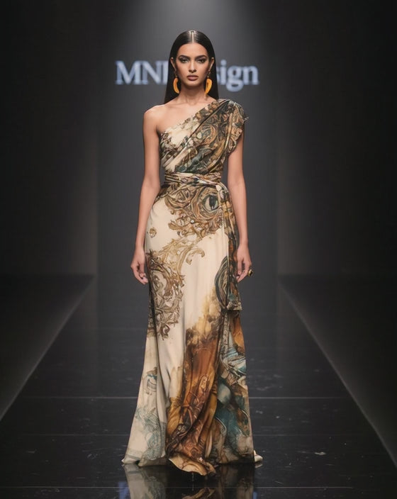 It is the poetic translation of mythology into modern couture — where heritage breathes through every fold of satin.