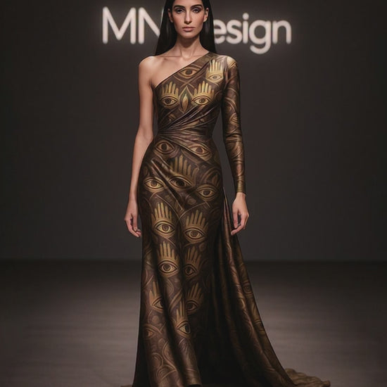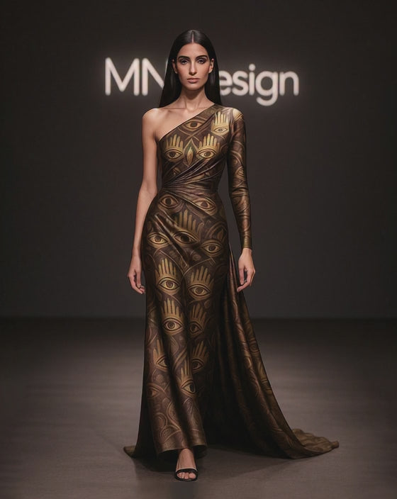 The Eye of Eternity Gown embodies protection, awareness, and the eternal feminine spirit — an ode to the moment when Omna El-Ghola stands as the guardian of her myth.